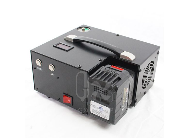 GX-E-L1为您提供了一种更简单的方式来填充高压PCP气枪,无需依赖于需要提前填充的气瓶。由于它使用了一个带有高流量风扇的冷却系统,可以冷却整个设备和所有内部组件,延长了使用时间。L1可以在家里或旅途中使用,因为它由锂电池或普通的110V/220V插座供电。另外,它的顶部有一个把手,方便携带。您将享受可调节的自动关闭功能,可将压力设置为4500 psi,并在达到该压力时让压缩机停止填充。